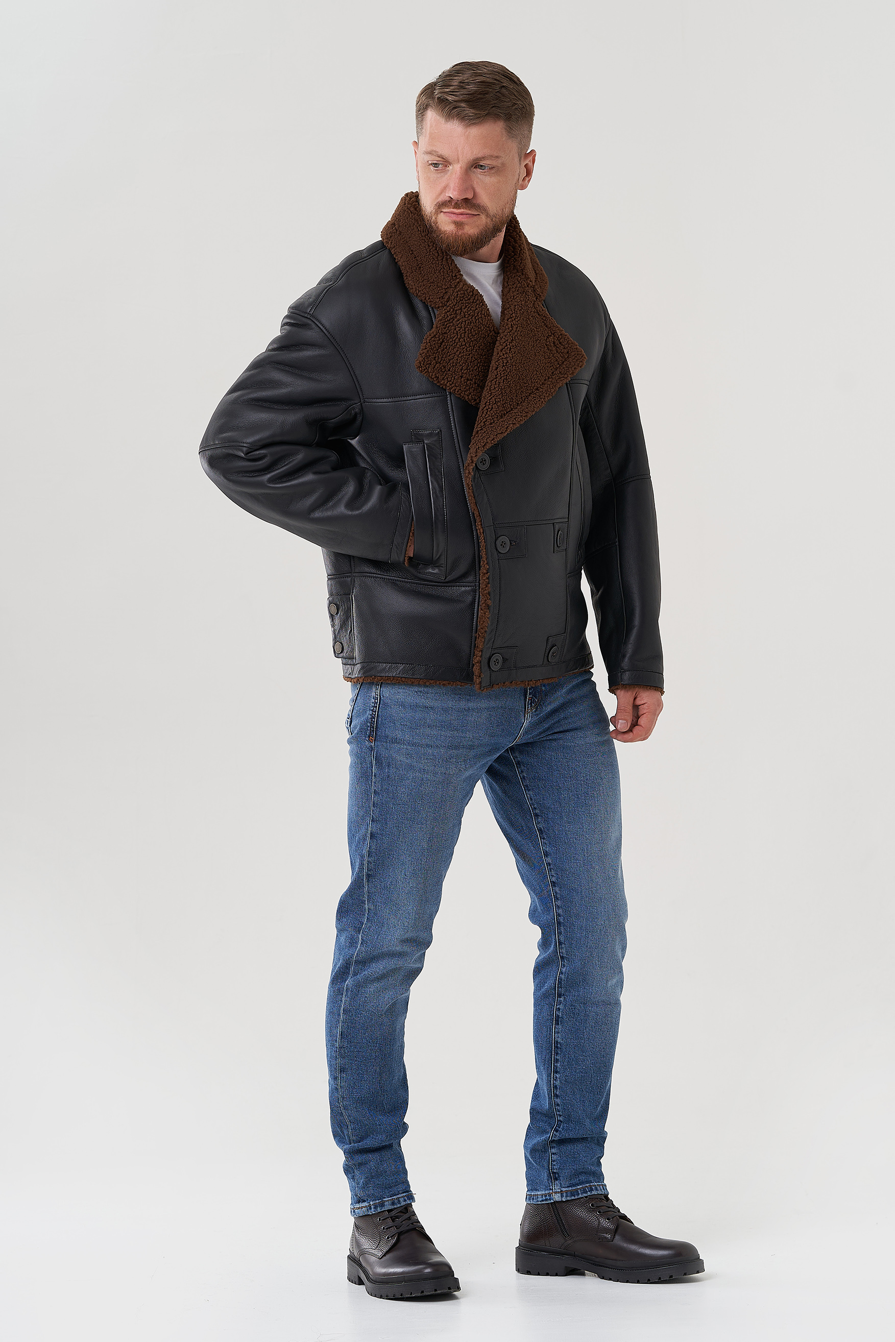 Тип ворота - английский воротник , отделка овчина мерино, цвет - коричневый