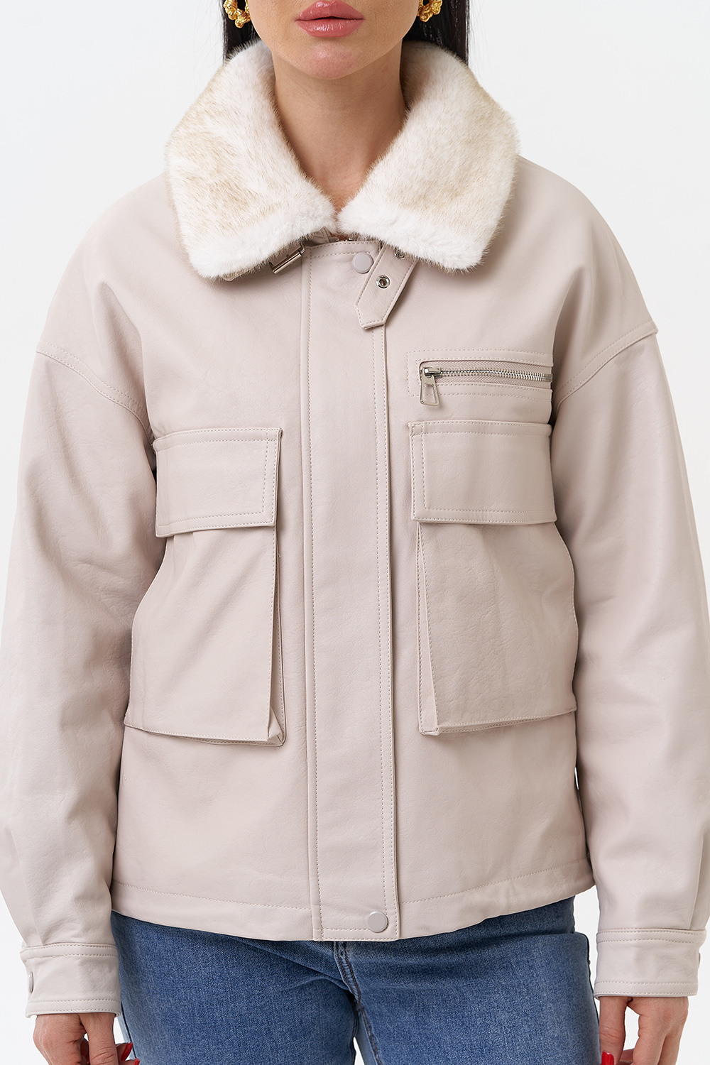 Крой воротника - отложной, отделка эко мех