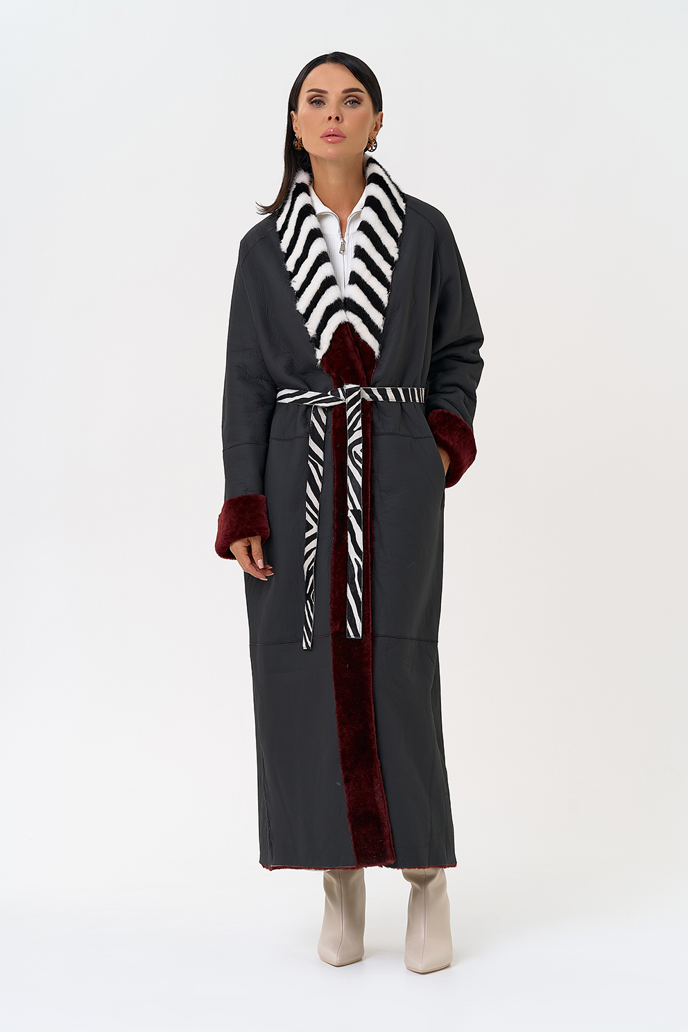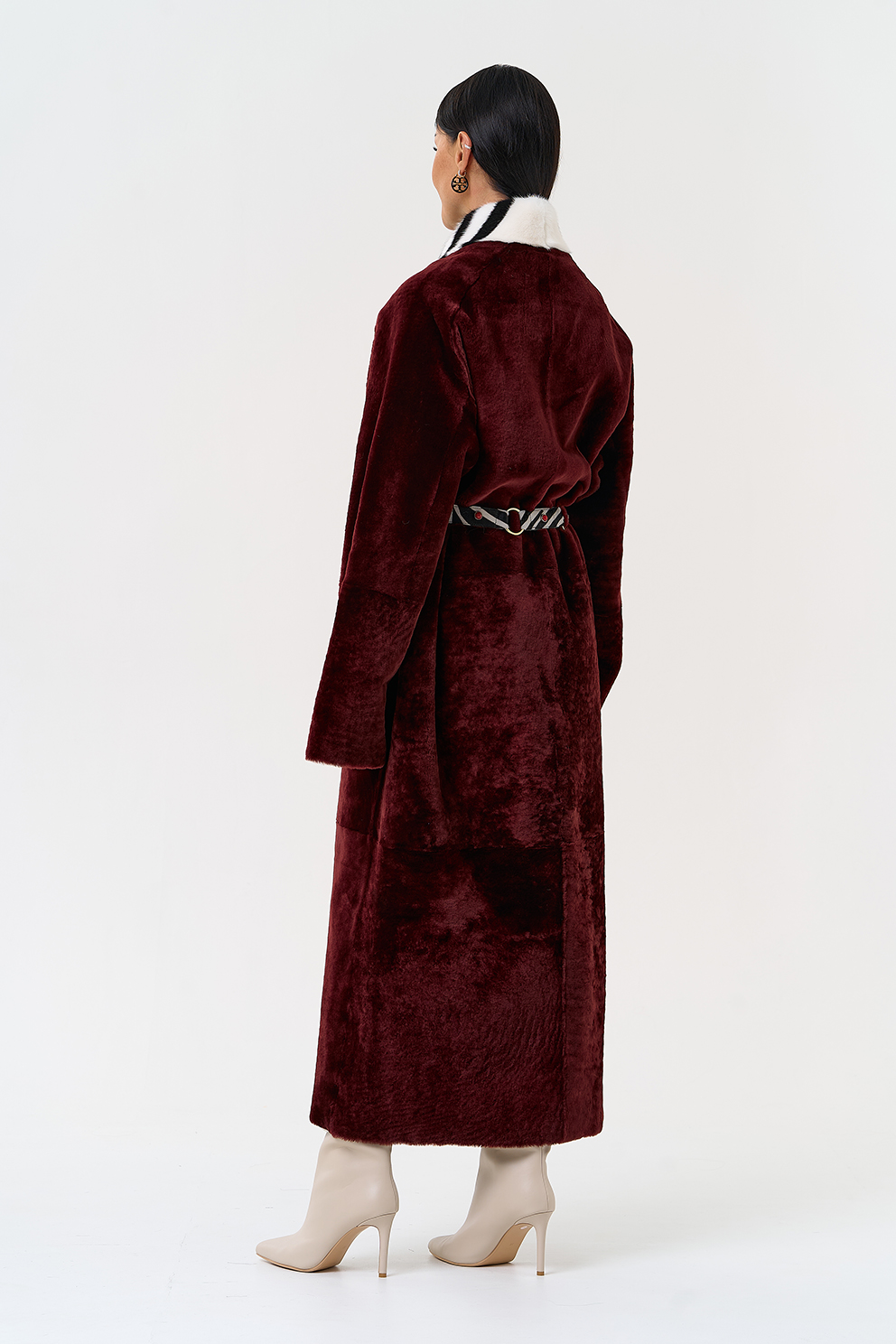 Вид застежки - кнопки, пояс из меха теленка Cavallino